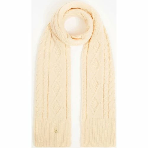 Echarpe torsadée – Guess jeans. Tons: les BEIGES. Logo: métal. Entretien: Lavage à la main. Longueur : 166 cm. Largeur: 30 cm. Matière: 52% Acrylique, 28% Polyamide, 20% Polyester.