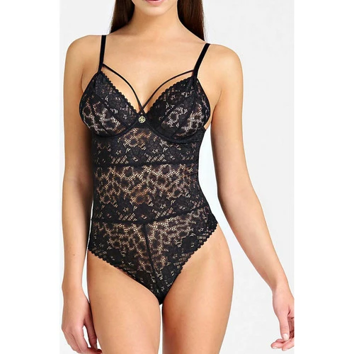 Superbe body tout en dentelle de la marque Guess avec fines bretelles reglables et armatures. Body très sexy avec sa ligne qui met en valeur la poitrineComposition : 86% polyamide 14% elasthane