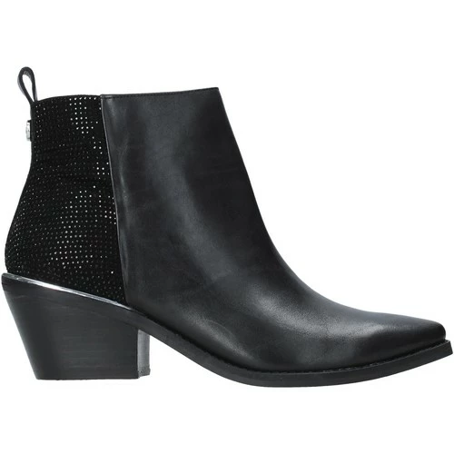 Description: bottine en cuir véritable et strass à bout effilé.