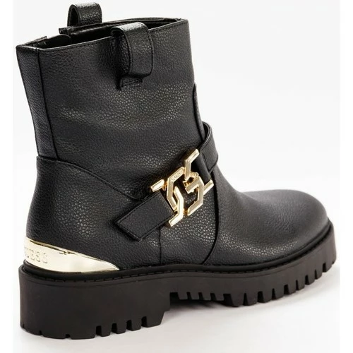 Meilleure vente ❤️ Guess Gold metal logo Bottines / 🥾 Boots Couleur Noir ⌛